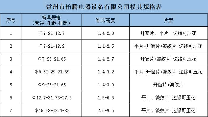 > 翅片模具规格、片型