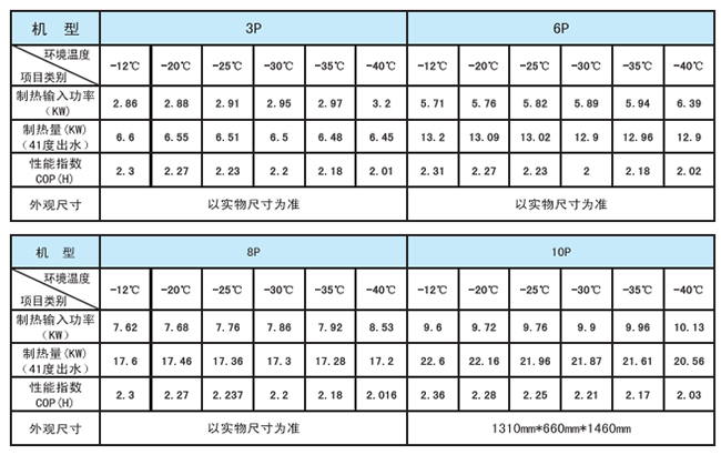 极寒空气源热泵在^低-60℃可正常使用,常规空气源热泵在-5℃环温之上能正常使用,超低温空气源热泵在-25℃之上才能正常使用。分体极寒空气源热泵在北方寒冷地区-60℃情况下,制热效果良好,不受低温环境的制约。常规空气源热泵在低于一25℃的情况下,制热效率就会大幅下降,因此在我国东北及西北地区选择空气源热泵时,一定要考虑空气源热泵的使用区域。