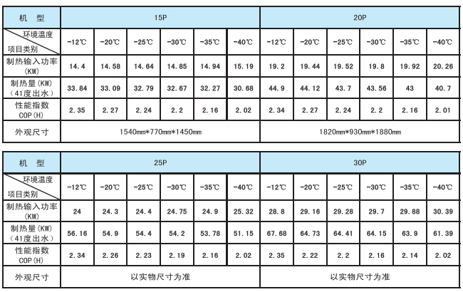 分体极寒空气源热泵在低环温下供暖效率要比常规热泵高30%~50%,在-45℃综合能效比在2.0左右,在-60℃环温下机器仍可正常运行,在低环温下使用比常规热泵更节能。